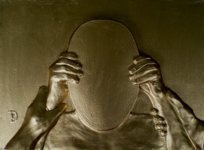 PSYCHOLOGIE HEUTE, Seite 40, Thanatopsychologie, August 2010). Indirekt kann die Plakette somit auch als Anregung zur "Achtsamkeit" , eines achtsam gelebten Lebens also, aufgefasst werden. Diese möglichen Assoziationen und Anknüpfungspunkte für einige Interpretationswege werden aufgeführt, um zu zeigen, wie vielschichtig das Thema der vorgelegten Plakette, wie vielfältig die möglichen Anknüpfungspunkte für ihre Interpretation (auch in Zusammenhang mit dem Titel, der als Starthilfe gedacht ist) sein könnten. Der Betrachter wird sicherlich noch weitere Interpretationen für sich entdecken können. Andere Zusammenhänge der etwas ausgefallenen Art könnte man sicherlich noch durch googeln entdecken, auf das ich hier allerdings bewusst verzichtet habe. Sie sehen aus dem Vorstehenden, den Sein oder Nichtsein-Hamlet habe ich hier gar nicht herangezogen, das mag etwa einem passionierten Theaterbesucher überlassen bleiben. Wem allerdings nur die mit dem Hamlet verbundene Interpretation oder gar "Das Phantom der Oper" einfällt, kann dafür schwerlich der Plakette die Schuld geben. Es bleibt auch hier hoffentlich ein für jeden Betrachter unterschiedliches Restgeheimnis übrig - da es der Kunst (zumindest gilt dies für die bildende Kunst, aber nicht nur für diese) sehr förderlich im allgemeinen ist, wenn sie ein Restgeheimnis, ein Unerklärliches behält ; wenn sie eben nicht völlig aufgeht. In dieser Hinsicht schließe ich mich der Auffassung von ausgewiesenen Kunstkritikern und Kunstwissenschaftlern gerne und nach eigenem Empfinden überzeugt an. Damit hat die Phantasie des Betrachters größeren Raum was ich im Sinne seines möglichst andauernden Interesses für das Kunstwerk (sofern die Darstellung nicht beliebig ist) für sehr erstrebenswert halte. Zu anderen Zeiten kann er so jeweils Unterschiedliches für sich entdecken. Das Schönste, was wir erleben können,