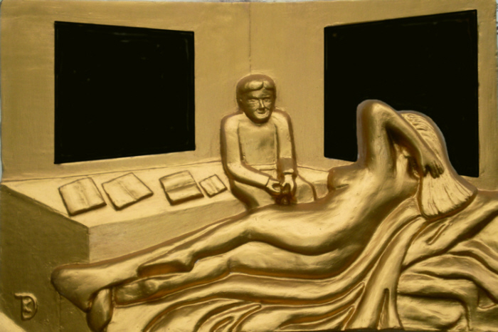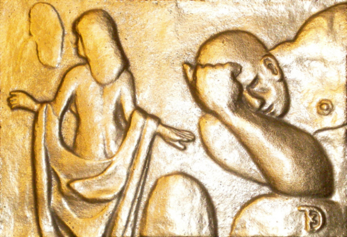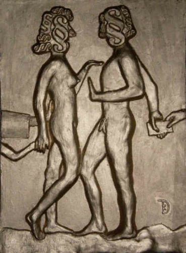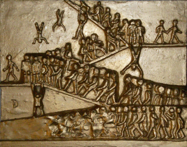 Wir werden nun einige wenige Medaillen/Reliefs etwas näher betrachten und bei wenigen Werken mögliche Einstiegspunkte für verschiedene Interpretationen geben. Es wird sich dabei nur um Beispiele für mögliche Einstiege in ganz subjektive Interpretationen handeln. Der Betrachter kann natürlich weitere und auch ganz andere Assoziationen für sich selbst erhalten und Interpretationen finden. Wir geben nur etwas widerwillig diese Beispiele, weil wir natürlich wissen, dass dadurch ein Teil des Reizes dieser Werke verloren geht. Andererseits haben wir erfahren müssen, dass es Betrachter dieser Werke gibt, die diesen absolut verständnislos gegenüberstehen, weil ihnen die Kunst des Interpretierens völlig fremd ist . Das ist nicht unverständlich, weil im heutigen Kunstbetrieb nach unserer Einschätzung sich viele Werke einer Interpretation durch den Betrachter verschließen oder ihn in ihrer Beliebigkeit "allein lassen" - aus verschiedenen Gründen. Ein "Kunstexperte" mag trotzdem durchaus auch bei solchen Werken natürlich eine schöne, tiefsinnige Betrachtungsweise und/oder eine bewunderungswürdige Theorie darauf aufbauen .... Wir möchten dem Betrachter in der Darstellung eines Themas die Möglichkeit zu bieten, auf verschiedenen Ebenen unmittelbar Zusammenhänge zwischen sich selbst und dem Dargestellten zu knüpfen- denn gerade durch eine Verknüpfung von Komponenten innerhalb eines Ganzen entsteht Sinn für den Betrachter. Wie weit er diese Zusammenhänge knüpfen kann oder will bleibt ihm natürlich selbst überlassen. Gerade dieses persönliche Entdecken von Sinn erscheint uns bei immer stärkerer Verbreitung von individuellen und gesellschaftlichen Sinnkrisen von großer Bedeutung. Jeder Betrachter sieht natürlich jedes Werk durch