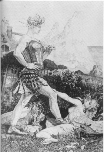 der Plakette ist in der gleichen Literaturstelle gegeben: Eine weitere mögliche Assoziation des Betrachters bei dieser Medaille könnte durch den direkten Vergleich der beiden Gesichtshälften hervorgerufen werden. Links das lebendige Gesicht mit offenen Sinnen (Auge, Ohr) und rechts ein erstarrtes, denkmalhaftes Gesicht. Im Zusammenhang mit dem Teil des Relieftitels Sein oder Nichtsein, könnte er dazu angeregt werden, darüber nachzudenken, wie er selbst zu der nicht seltenen gesellschaftlichen Vorstellung steht , dass man in seinen Werken weiterleben könnte, also in den Denkmälern, die die Gesellschaft ihm setzt oder die er sich selbst zu setzen versucht. Ich will den Gedanken hier nicht weiter verfolgen, er könnte zu recht pessimistischen Folgerungen führen- vielleicht aber auch zu der praktischen Schlussfolgerung, dass das Leben jetzt und heute das Wichtige ist, auf das es sich zu konzentrieren gilt und das Gedenken , das spätere Denkmal, nur von sehr bedingtem Wert ist. Zum Thema "Zeit und Ruhm" zitieren wir hier als kleine Auflockerung zum Text das gleichnamige Bild von Max Klinger: "...im Titel des ... Blattes, "Zeit und Ruhm", kündigt sich an, dass alles Zeitliche der Menschen vergehen wird. Für die Zeit gibt es keinen Widerstand, sie schreitet unbarmherzig über alles hinweg, auch wenn sich der Ruhm als verführerisch schöne Frauengestalt in den Weg legt. ( Gerhard Winkler: Max Klinger, VEB E.A.Seemann Verlag Leipzig, 1984) Wer sich in der Dichtung ein wenig auskennt, könnte sich möglicher Weise an Rainer Maria Rilkes Verse erinnern: Der Tod ist groß, wir sind die Seinen, lachenden Munds. Wenn wir uns mitten im Leben meinen, wagt er zu weinen, mitten in uns.Die beiden Gesichtshälften, die lebendige und die erstarrte, sind durch eine dünne Trennlinie miteinander verbunden. Diese Trennlinie gilt es für sich selbst auszutarieren also des eigenen Lebens Mitte zu definieren bzw. zu finden. Der Zusammenhang zwischen der Mitte des Lebens und