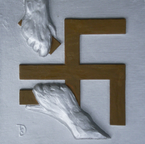 Diese Plakette ist der "Nazikeule" gewidmet, einem besonders in Deutschland bei gesellschaftlichen Diskussionen gerne gebrauchten Instrument- um den politischen Gegner zu dämonisieren (dies ist durchaus auch unter "demokratischen" Parteien üblich) , in eine Schmuddelecke zu drängen und um sich das lästige Nachdenken zu ersparen, sachliche und konstruktive Argumente zur Lösung eines gesellschaftlichen Problems zu finden.
